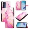 Ihanasti liukuvin pinkin värisin marmoroinnein somistettu lompakkokotelo, joka tuo suojauksen Samsung Galaxy A16 -älypuhelimelle.