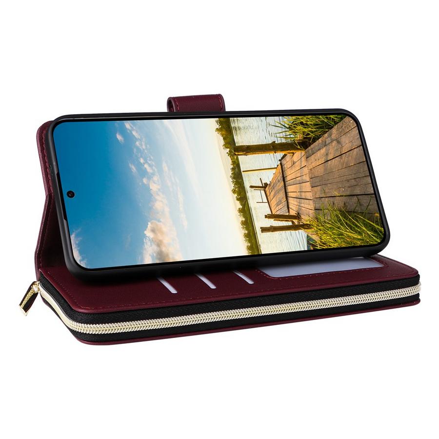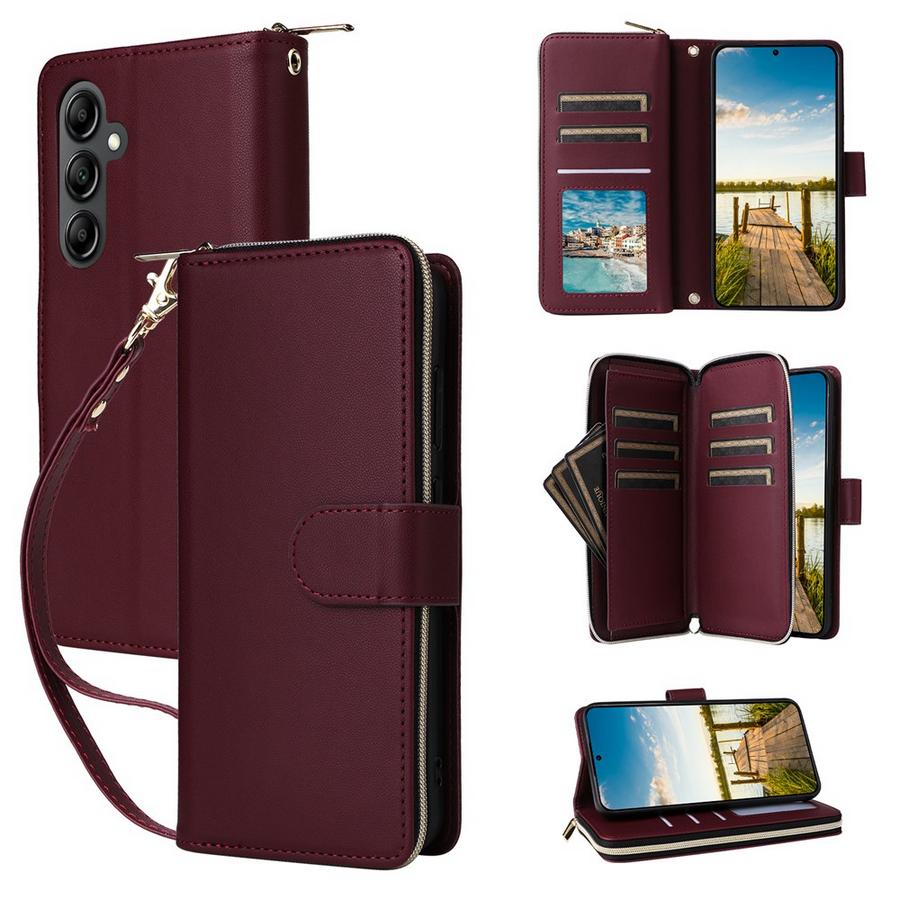 Kaunis viininpunaisen sävyinen lompakko antaa Samsung Galaxy A17 puhelimelle suojauksen vahingoilta ja erinomaiset tilat maksuvälineille.