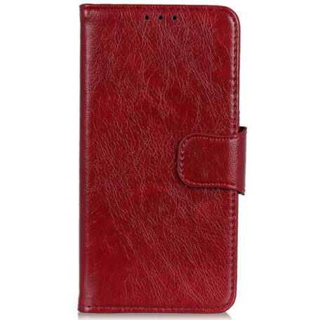 Viininpunaiseen väriin puettu laadukas ja lompakkomallinen nahkakotelo suojamaan Samsung Galaxy A17 puhelinta rikkoutumiselta.