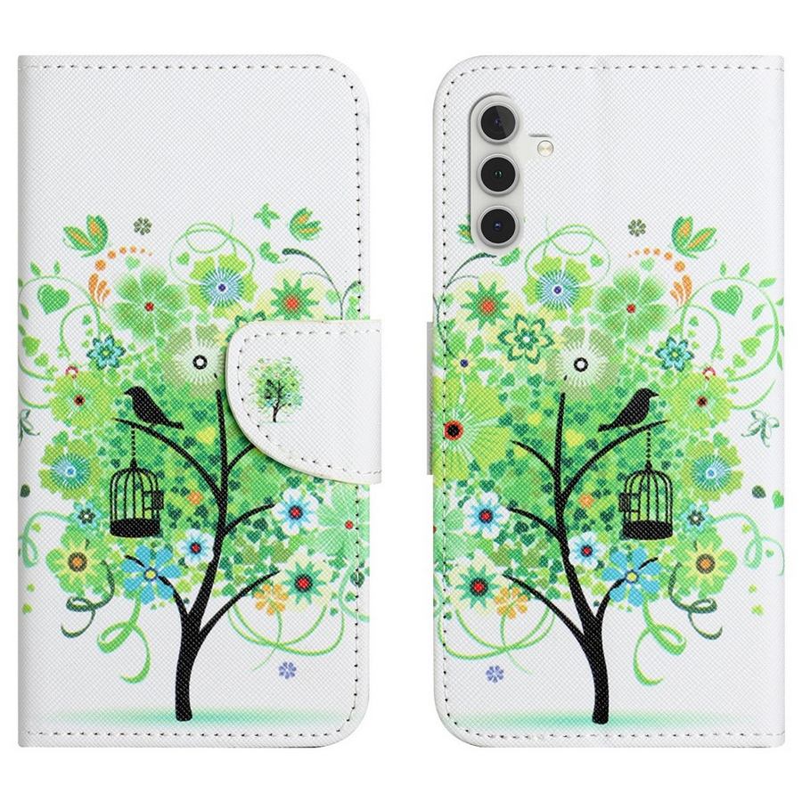 Raikkain värein satumaisena kukkivan puun kuvioima, napakka ja kaikki pinnat peittävä suojakotelo Samsung Galaxy A17 puhelinta varten.
