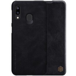 Tyylikäs ja laadukas musta kannellinen Nillkin Qin kotelo antaa Samsung Galaxy A20e älypuhelimellesi hyvän suojan iskuja ja naarmuja vastaan.