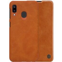 Tilaa tyylikäs ja laadukas ruskea Nillkin Qin sarjan kannellinen suojakotelo antamaan suojaa Samsung Galaxy A20e älypuhelimellesi.