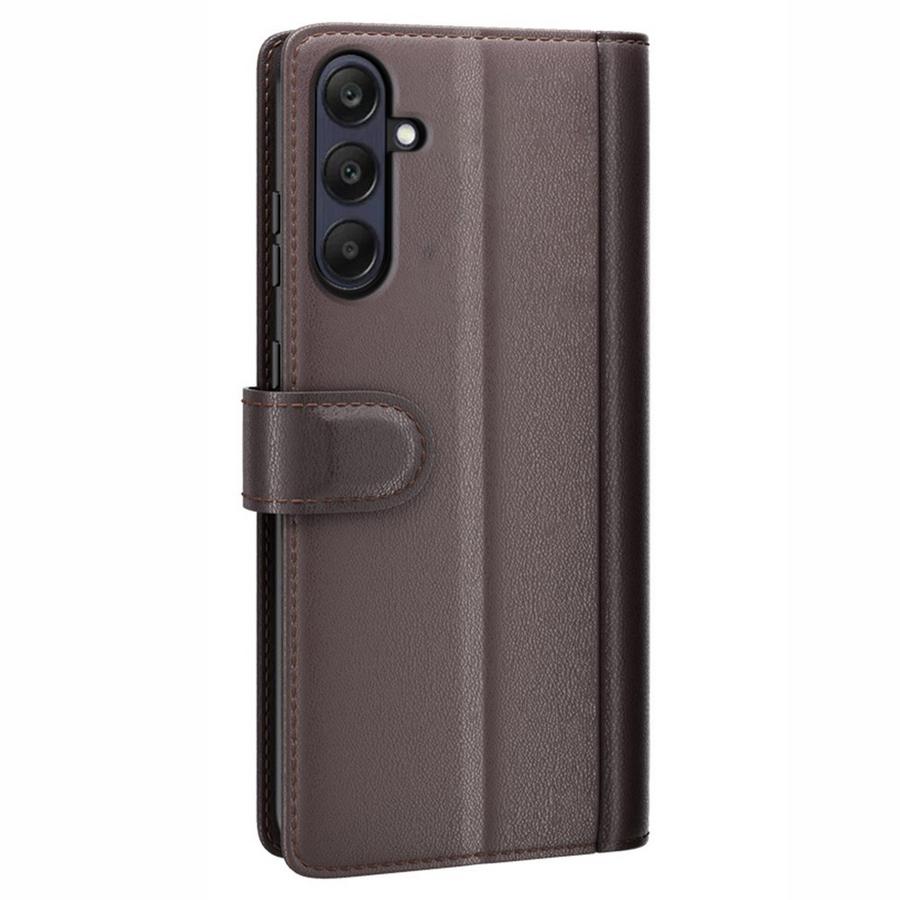 Tyylikäs ja kestävä kahvinruskean sävyinen nahkakotelo Samsung Galaxy A26 5G -älypuhelimen suojaamiseksi osumilta ja naarmuilta.