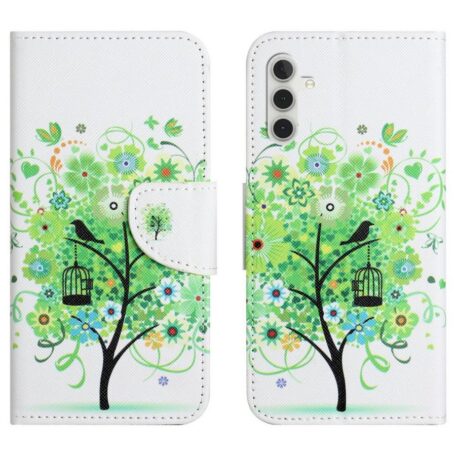 Raikkain värein satumaisena kukkivan puun kuvioima, napakka ja kaikki pinnat peittävä suojakotelo Samsung Galaxy A26 5G puhelinta varten.