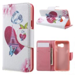 Suojaa Samsung Galaxy A3 (2016) SM-A310F älypuhelin sydän ja Eiffel-torni kuvioisella suojakotelolla.