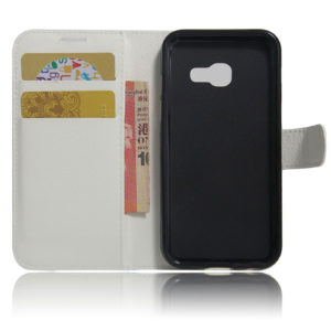 Valkoisella lompakkokotelolla suojaat Samsung Galaxy A3 (2017) SM-A320F puhelimen ja pidät kortit ja kuitit mukana.