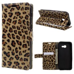 Suojaa Samsung Galaxy A3 (2017) älypuhelin leopardi kuvioisella lompakko suojakotelolla.