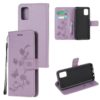 Hempeään vaaleasävyiseen violettiin koteloon on painokuvioitui perhosia ja kukkia, kaunis tuote suojaamaan Samsung Galaxy A32 5G puhelinta