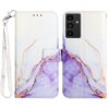 Vaaleaa ja violettia pintaa kauniisti marmorikuvioituna kotelossa, jolla suojaat Samsung Galaxy A34 5G puhelimen rikkoutumiselta.
