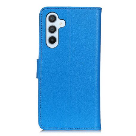 Puhelimen rikkoutumiselta ja naarmuilta suojaava, kauniin sininen lompakkokotelo Samsung Galaxy A34 5G mallille.