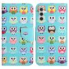 Leikkisän suloinen suojakotelo Samsung Galaxy A34 5G puhelinmallin suojaamiseen, pöllöhahmoilla kuvioituna.