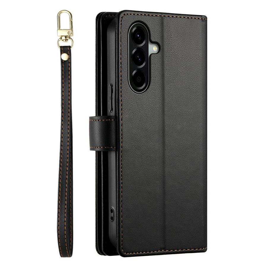 Tyylikkään mustan värisessä lompakossa on hyvä suojaus Samsung Galaxy A37 5G -puhelimelle ja paljon tilaa maksuvälineille.