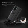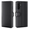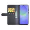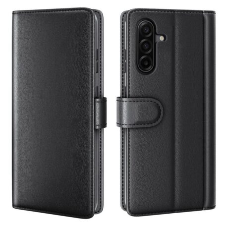 Samsung Galaxy A37 5G -älypuhelimelle sopiva musta nahkakotelo tarjoaa laadukasta suojaa arjen vahingoilta ja naarmuuntumiselta.