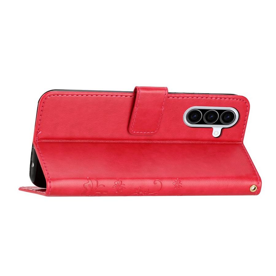 Osumilta ja naarmuilta suojaava kotelo Samsung Galaxy A37 5G puhelimelle, kansissa iloisen pinkki väritys kukin sekä perhosin somistettuna.