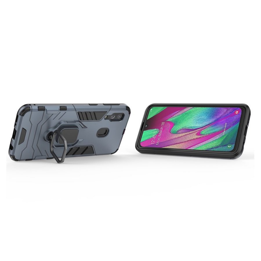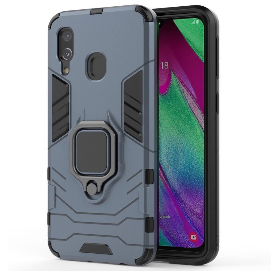 Puhelimenkuoret.fi nettikaupasta tilaat edullisesti ja nopealla toimituksella Samsung Galaxy A40 puhelimeen sopivan sinisen sormus suojakuoren.