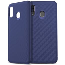 Kevyt ja hyvin suojaava tummansininen suojakuori Samsung Galaxy A40 älypuhelimelle.