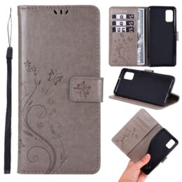 Elegantin harmaa kotelo on kuvioitu hillityn kauniisti perhosilla ja kukilla. Suojaamalla Samsung Galaxy A41 puhelimen voit käyttää sitä huoletta.