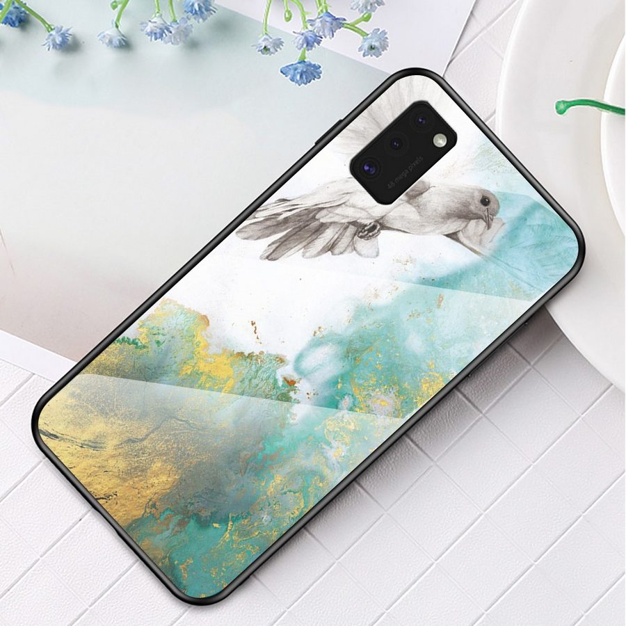 Samsung Galaxy A41 puhelinkuoren maalauksellinen kuviointi henkii tyyneyttä ja rauhaa. Mieli kevenee myös, kun tietää laitteen olevan suojassa kolhuilta.