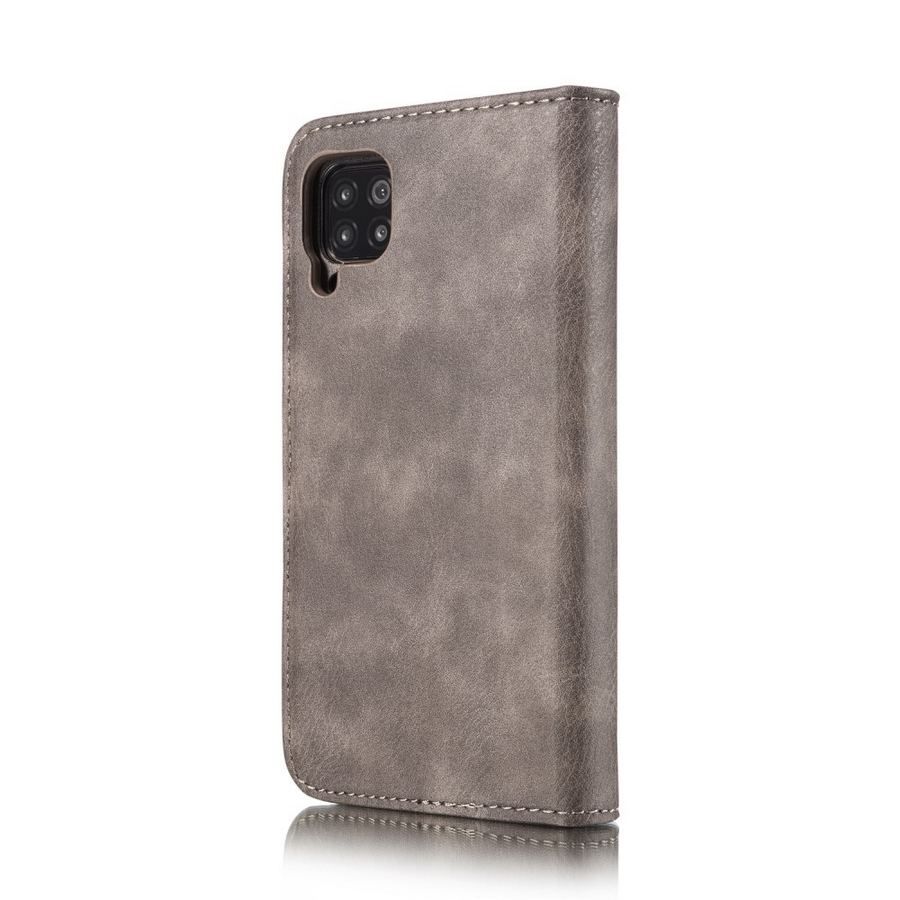 Upea ja hillityn harmaansävyinen kotelo Samsung Galaxy A42 5G puhelimen suojaksi. Näppärä yhdistelmäkotelo, jossa on lompakkokannet ja takakuori samassa.