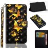 Samsung Galaxy A42 5G sopivalla lompakkomallisella kotelolla suojaat puhelimen särkymiseltä, upea perhoskuvionti tummalla pohjalla.