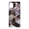 Graafisin muodoin kuvioidussa takakuoressa on marmoripintaisia tummia ja violetin sävyjä, soveltuu suojaamaan Samsung Galaxy A51 5G puhelinmallia.