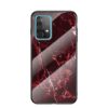 Näyttäviä punaisia värisävyjä marmorikuvioidussa takakuoressa, joka suojaa Samsung Galaxy A52 / A52 5G puhelinta vahingoittumiselta.
