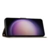 Vahingoilta ja naarmuilta suojaava lompakkomallinen kotelo Samsung Galaxy A56 5G puhelimen turvaksi, värityksenä lämmin ruskean sävy.