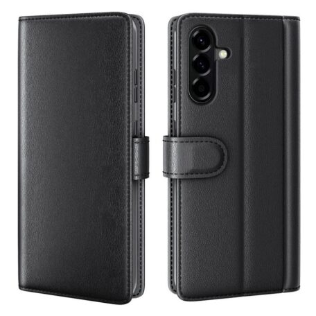 Klassiseen tyyliin muotoiltu, vahva ja käytännöllinen musta nahkakotelo on erinomainen suoja Samsung Galaxy A57 5G -puhelimelle.