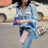 Osumilta ja naarmuilta suojaava kotelo Samsung Galaxy A57 5G puhelimelle, kansissa iloisen pinkki väritys kukin sekä perhosin somistettuna.