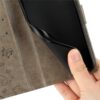 Lompakkomallinen kotelo pysyy kiinni magneettisella läpällä ja ympäröi puhelimen kauttaaltaan.