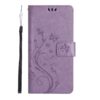 Kukkaköynnöksellä ja perhosilla somistettu vaaleasävyisen violetti kotelo on kattava vahingoittumisen suoja Samsung Galaxy A57 5G puhelinmallille.