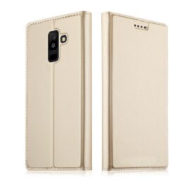 Tilaa ohut ja tyylikäs kullanvärinen kannellinen suojakotelo suojaamaan Samsung Galaxy A6+ (2018) älypuhelinta iskuilta ja putoamisilta.
