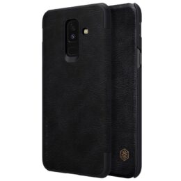 Suomalaisesta puhelimenkuoret.fi verkkokaupasta tilaat hintaan 17.95 euroa laadukkaan mustan Nillkin Qin kotelon Samsung Galaxy A6+ (2018) älypuhelimelle.