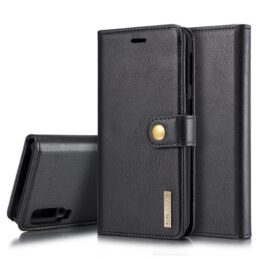 Meiltä tilaat nopeasti ja edullisesti Samsung Galaxy A7 (2018) älypuhelimeen sopivan mustan nahkaisen DG.MING 2-in-1 yhdistelmäkotelon.
