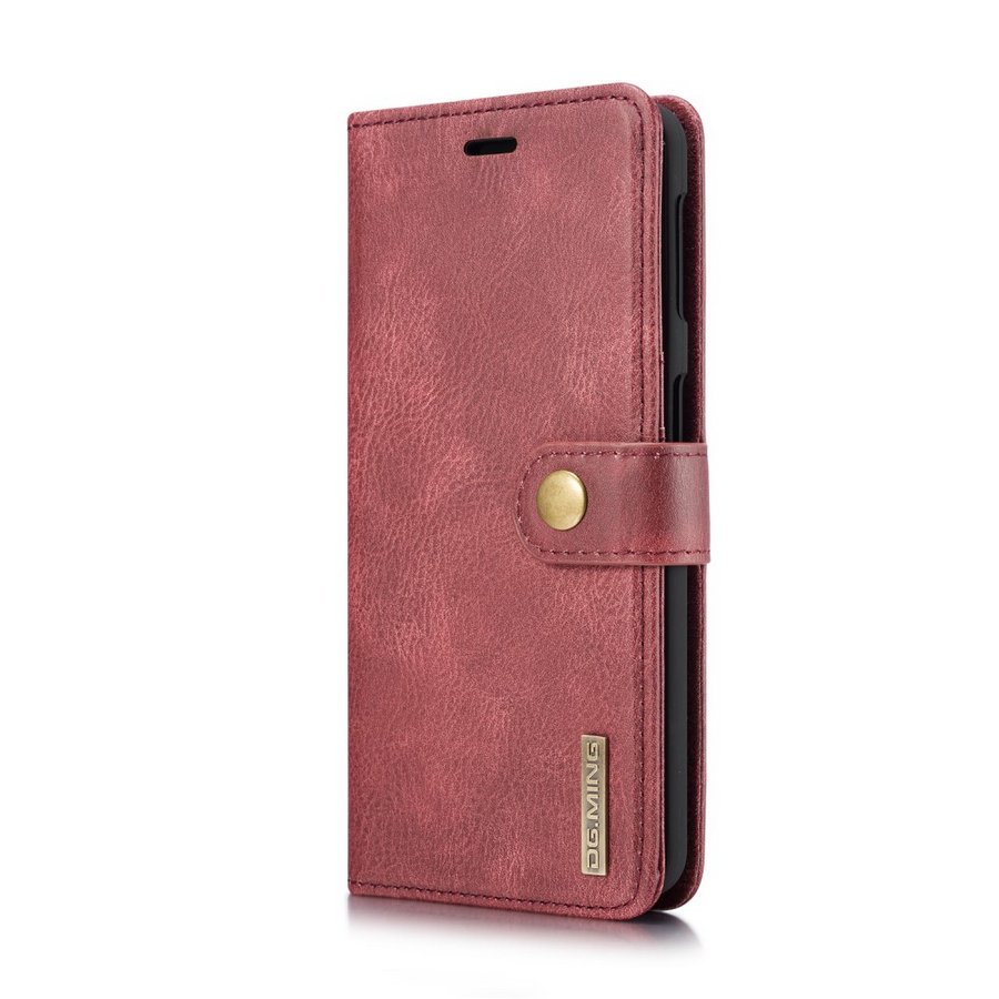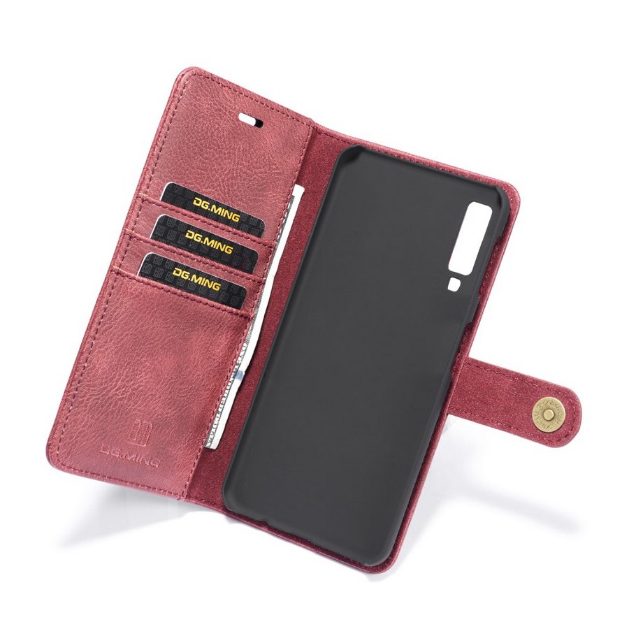 Puhelimenkuoret.fi verkkokaupasta tilaat kätevän 2-in-1 punaisen DG.MING yhdistelmä nahkakotelon suojaamaan Samsung Galaxy A7 (2018) älypuhelinta.