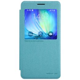 Suojaa Samsung Galaxy A7 älypuhelin naarmuilta ja kolhuilta tyylikkäällä sinisellä ohuella Nillkin Sparkle läpällisellä suojakuorella.
