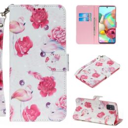 Ihania vaaleanpunaisia sävyjä flamingojen sulissa ja ruusujen terälehdissä. Kaunis hologrammikuvioitu kotelo suojaa Samsung Galaxy A71 puhelimen.