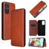Samsung Galaxy A72 puhelimelle soveltuva ryhdikäs, kestävä ja tyylikäs ruskea nahkakotelo suojaa laitetta rikkoutumiselta.