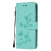 Raikas turkoosinvärinen kotelo on somistettu ihastuttavilla perhosten ja kukkien painokuvioilla, vaurioilta suojaava tuote Samsung Galaxy A72 puhelimelle.