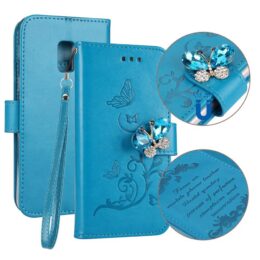 Suojaa Samsung Galaxy A8 (2018) älypuhelin upealla sinisellä perhos lompakkokotelolla.
