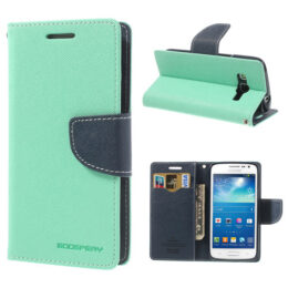 Suojaa Samsung Galaxy Express 2 älypuhelin kolhuilta ja naarmuilta upealla syaanilla lompakkokotelolla.