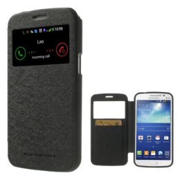 Tyylikäs ja laadukas musta ikkunallinen Mercury suojakotelo Samsung Galaxy Grand 2 puhelimelle.