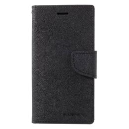 Musta Goospery Fancy kotelo auttaa suojaamaan Samsung Galaxy J3 (2017) puhelinta ja siinä säilytät kätevästi kortit ja kuitit.
