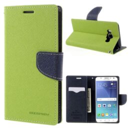 Samsung Galaxy J5 (2016) SM-J510F puhelimeen sopiva Fancy suojakotelo on vihreä ulkoa ja tummansininen sisältä.