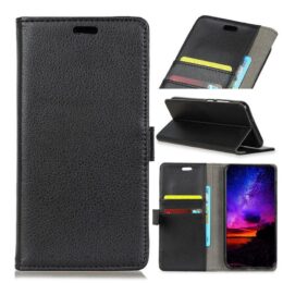 Kätevä ja edullinen musta lompakkokotelo Samsung Galaxy J6+ (2018) älypuhelimelle.
