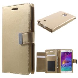 Suojaa Samsung Galaxy Note 4 älypuhelin putoamisilta, naarmuilta ja kolhuilta tyylikkäällä kullanvärisellä Rich Diary kotelolla.