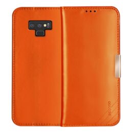 Tilaa erittäin laadukas ja tyylikäs aidosta pintanahasta valmistettu oranssin ruskea DZGOGO lompakkokotelo suojaamaan Samsung Galaxy Note 9 älypuhelinta.