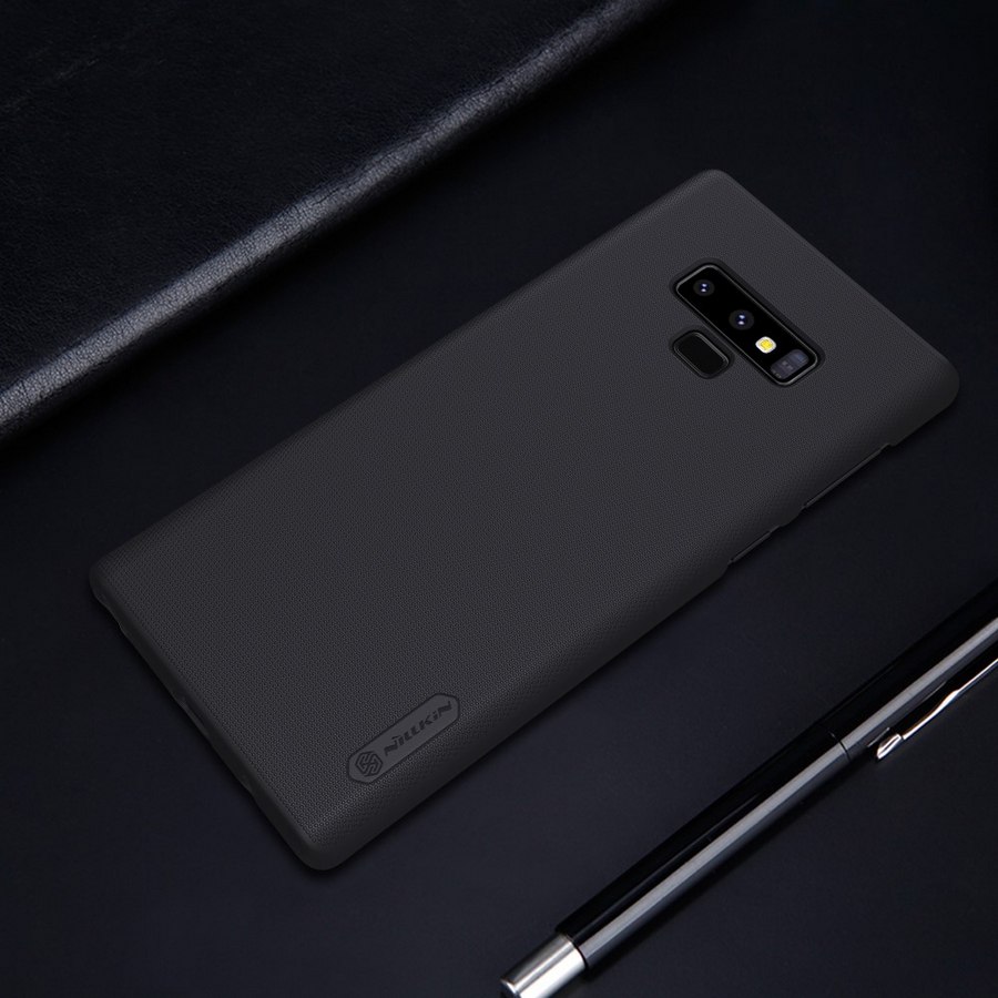 Nillkinin musta Super Frosted Shield suojakuori auttaa suojaamaan Samsung Galaxy Note 9 älypuhelinta iskuilta, naarmuilta ja kolhuilta.