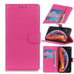 Pinkissä PU-nahasta valmistetussa lompakkokotelossa säilytät kuitit ja kortit ja sillä suojaat Samsung Galaxy S10 5G puhelimen naarmuilta ja kolhuilta.
