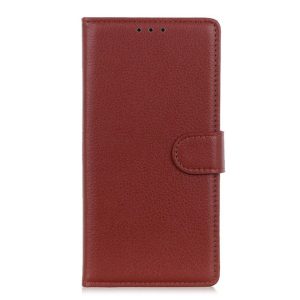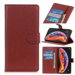 Ruskeassa PU-nahasta valmistetussa kotelossa säilytät kortit, setelit ja kuitit ja sillä suojaat Samsung Galaxy S10 5G puhelimen putoamisilta ja kolhuilta.